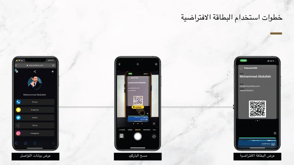 يمكنك تخصيص البطاقة للاضافة الى جهة الاتصال بشكل مباشرة واختصار الوقت والجهد.